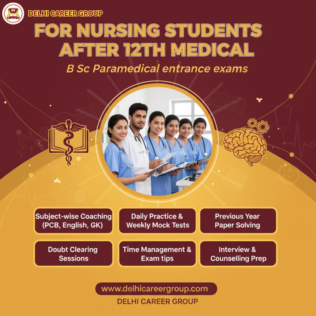 Delhi Career Group stands as India’s premier destination for comprehensive Prepare for B.Sc Paramedical Entrance Exam coaching, offering unparalleled preparation programs designed to transform aspiring candidates into successful military nursing officers. With years of expertise in defense examination preparation, our Prepare for B.Sc Paramedical Entrance Exam coaching academy has established itself as the most trusted name among students seeking to serve their nation through the prestigious Military Nursing Service.
